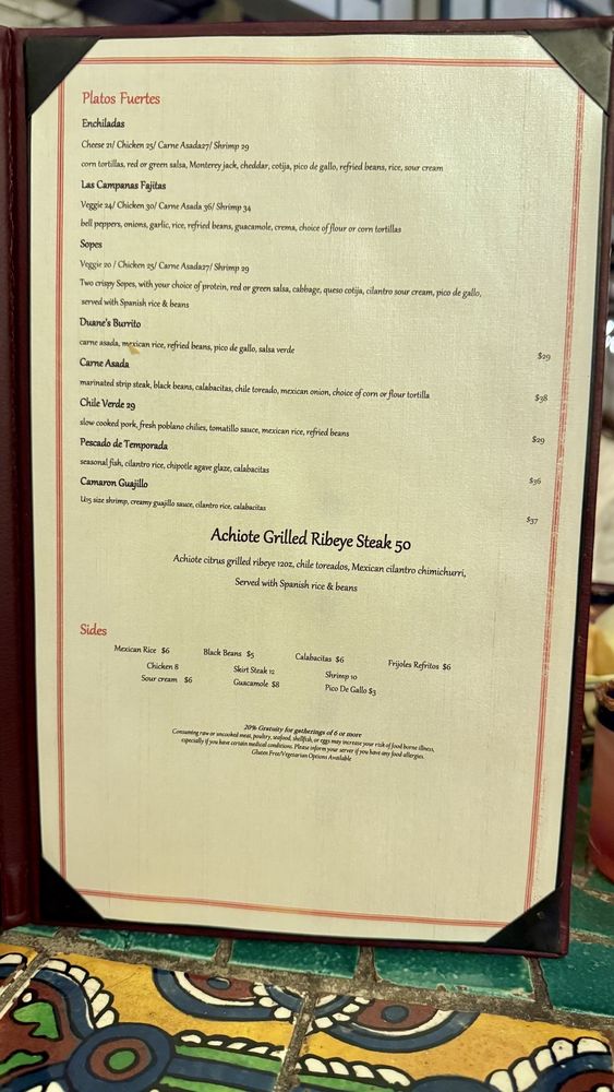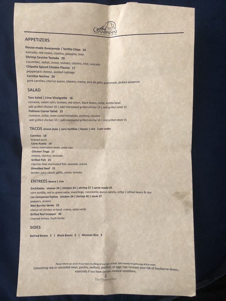 Las Campanas Mexican Cuisine & Tequila Bar Menu